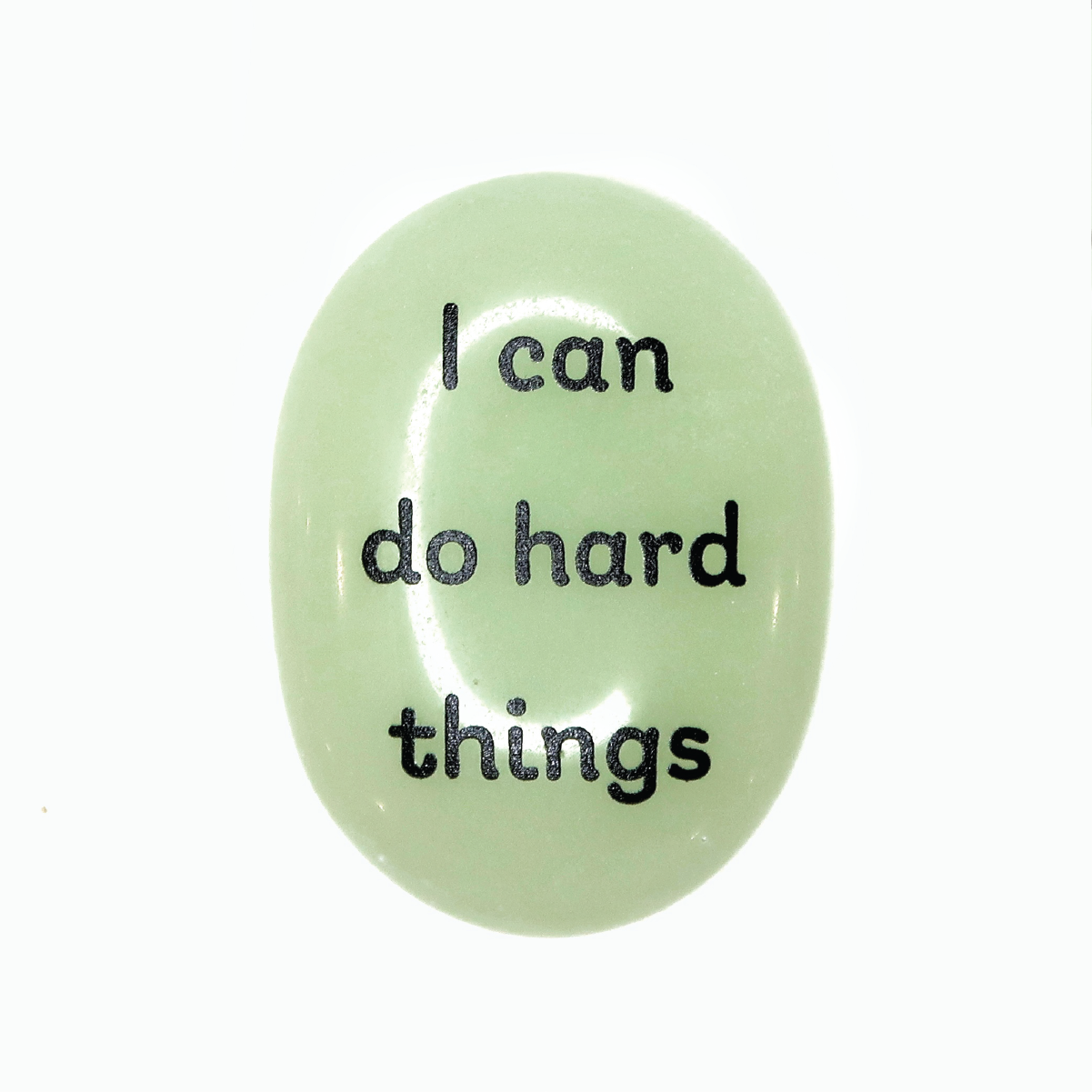 My daughter was very nervous about a performance. I put the "hard things" stone in her hand before the performance. I was quite amazed at the psychological effect. It seemed to boost her confidence in some way.