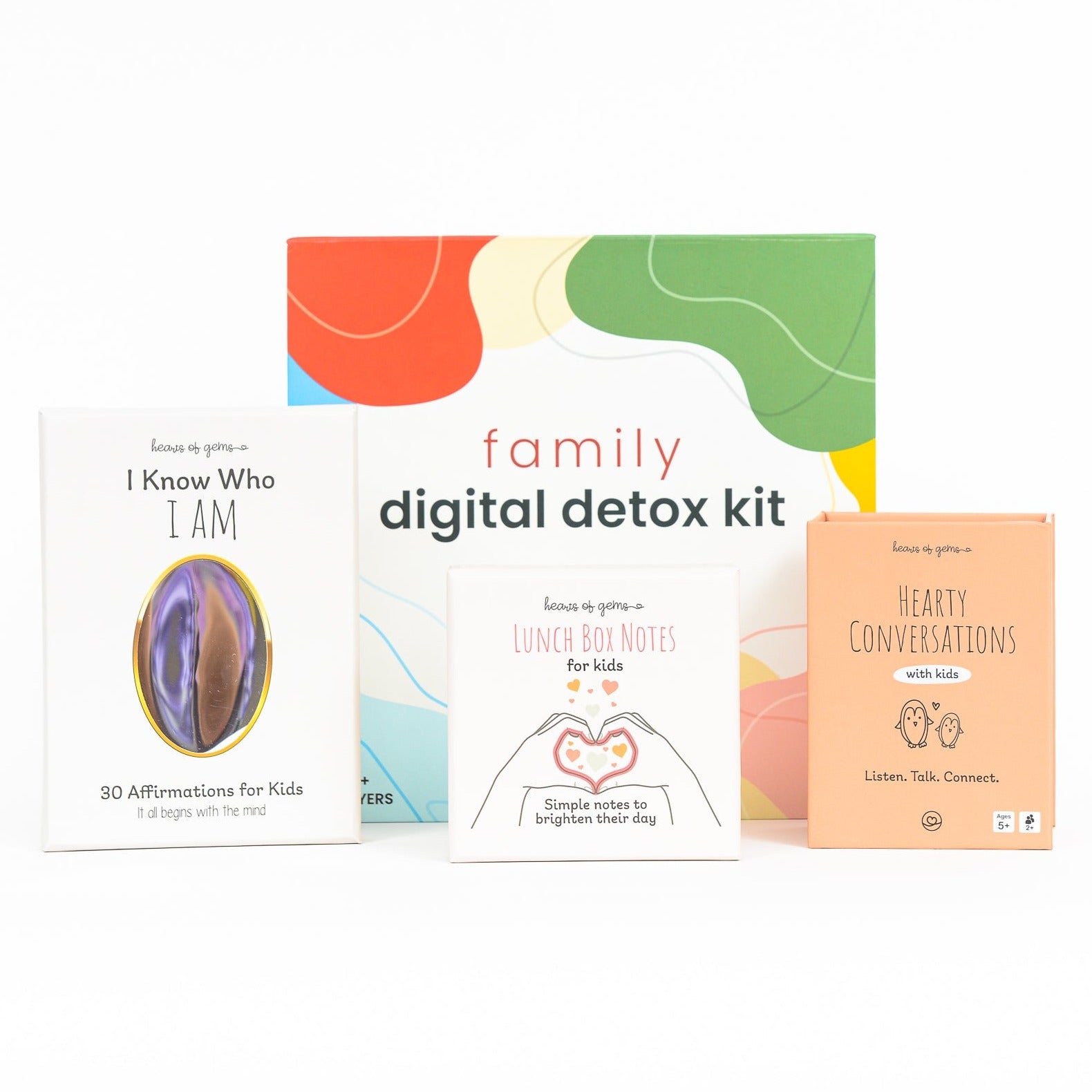 Includes the Family Digital Detox Kit, Hearty Conversations Deck, Kids Affirmation Deck and Lunchbox Notes.